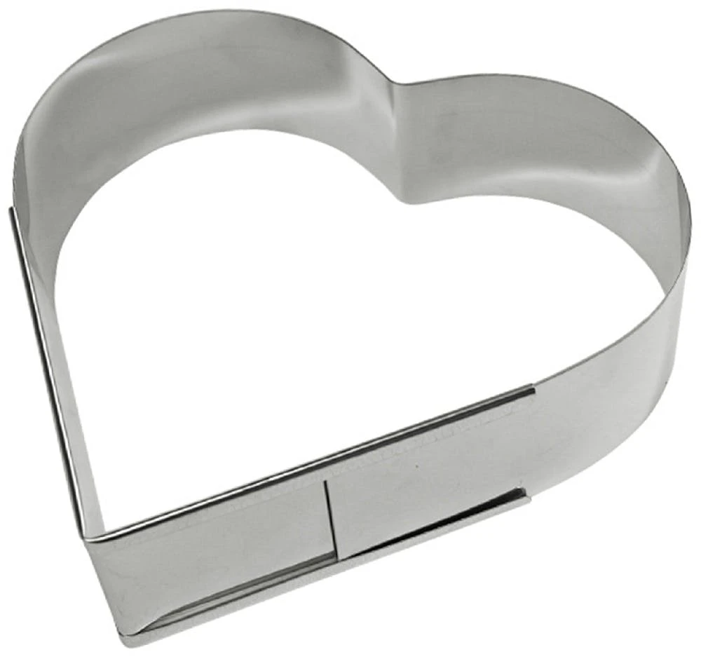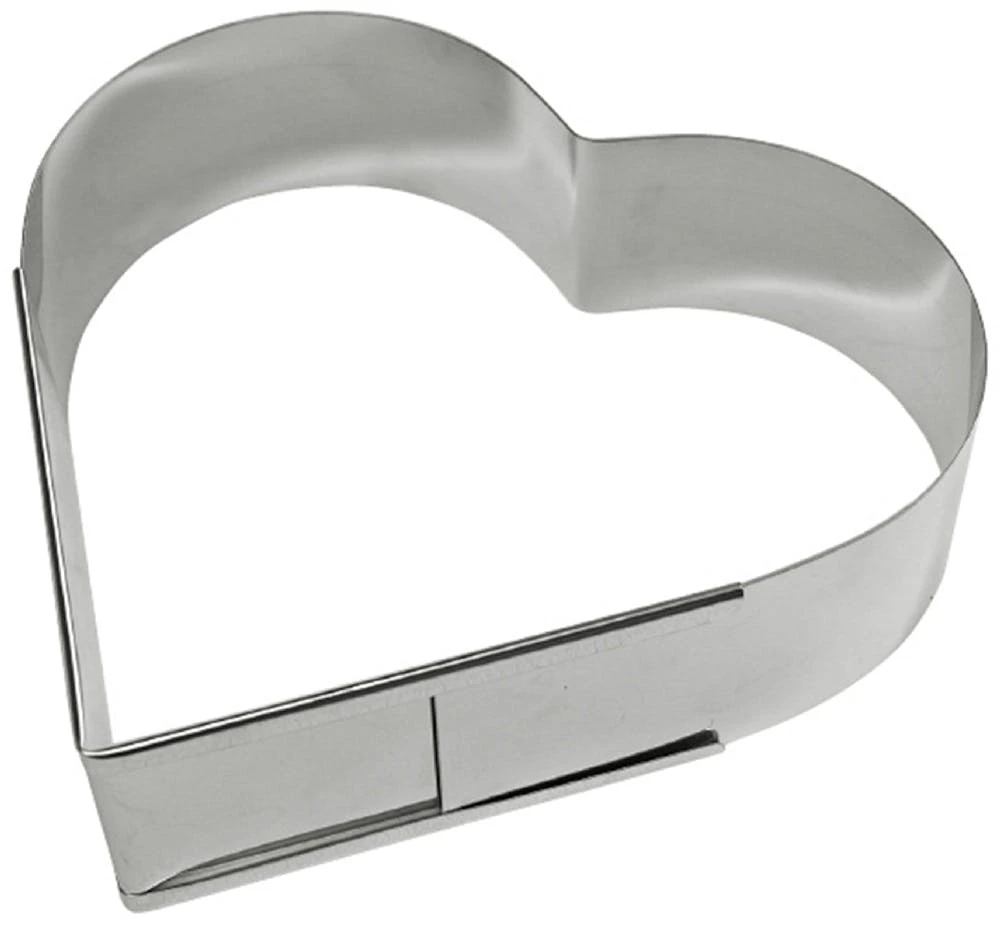 Verstellbarer Backrahmen in Herzform aus Edelstahl. ++ Material: Edelstahl ++ Materialstärke: 0,5mm – 1,00mm ++ ausziehbar/verstellbar ++ Höhe: 70mm ++