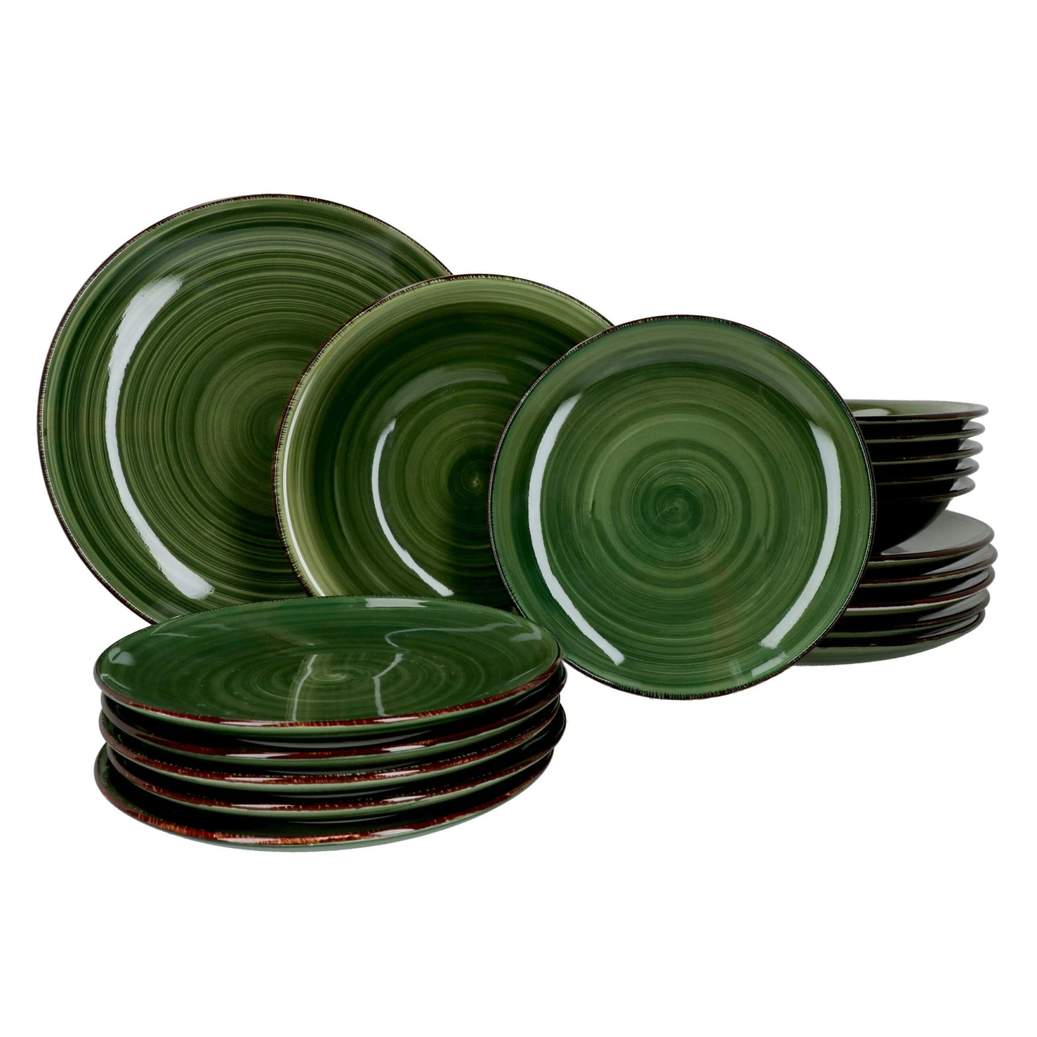 - 18-tlg. Teller Set Waldi 6x Kuchenteller, 6x Suppenteller & 6x Speiseteller in Dunkelgrün