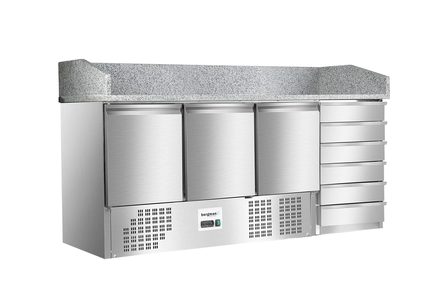 - Ausführung: mit drei Türen und 6 neutrale Schubladen für Pizzateigbehälter 400 x 600mm
