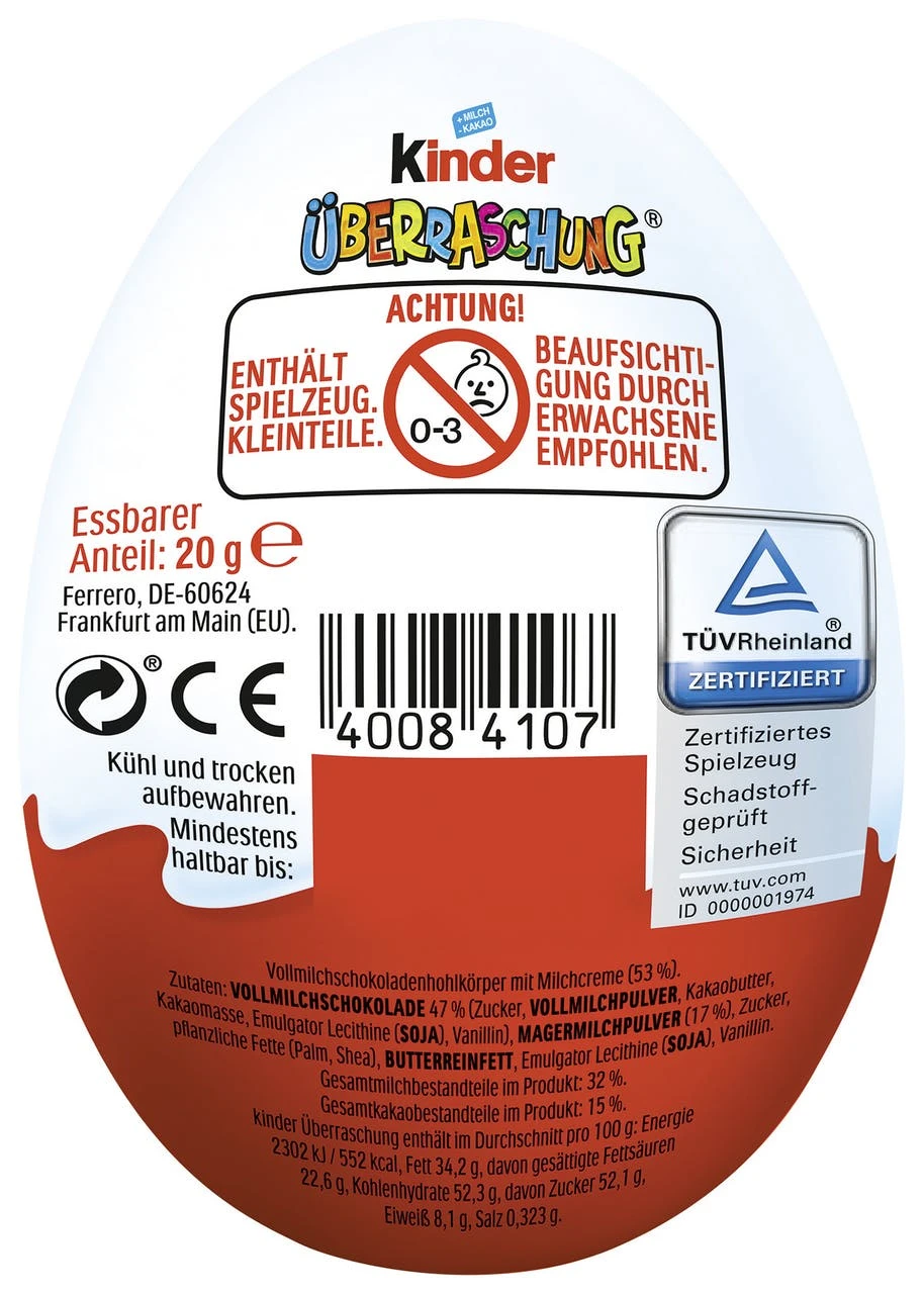 Das Überraschungsei mit seiner feinen Schicht aus leckerer Schokolade und einer von über 100 Überraschungen zaubert ein Strahlen in die Augen von Groß und Klein. Bestens geeignet als Wurfmaterial für Karneval / Fasching