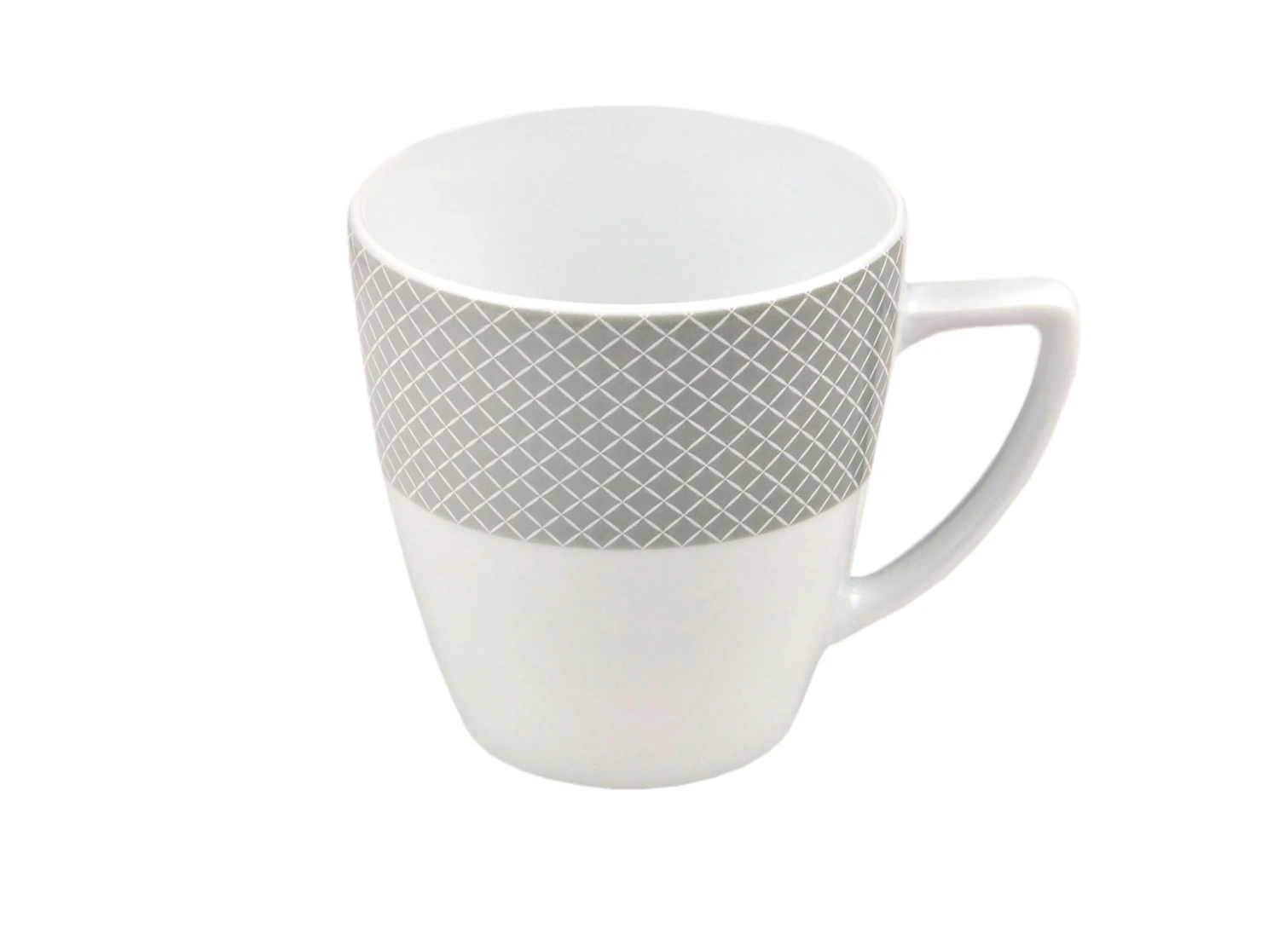 grau-weißes Gittermuster, welches zu einer Seite ins dunkelgrau verläuft. Der Rest des Service ist