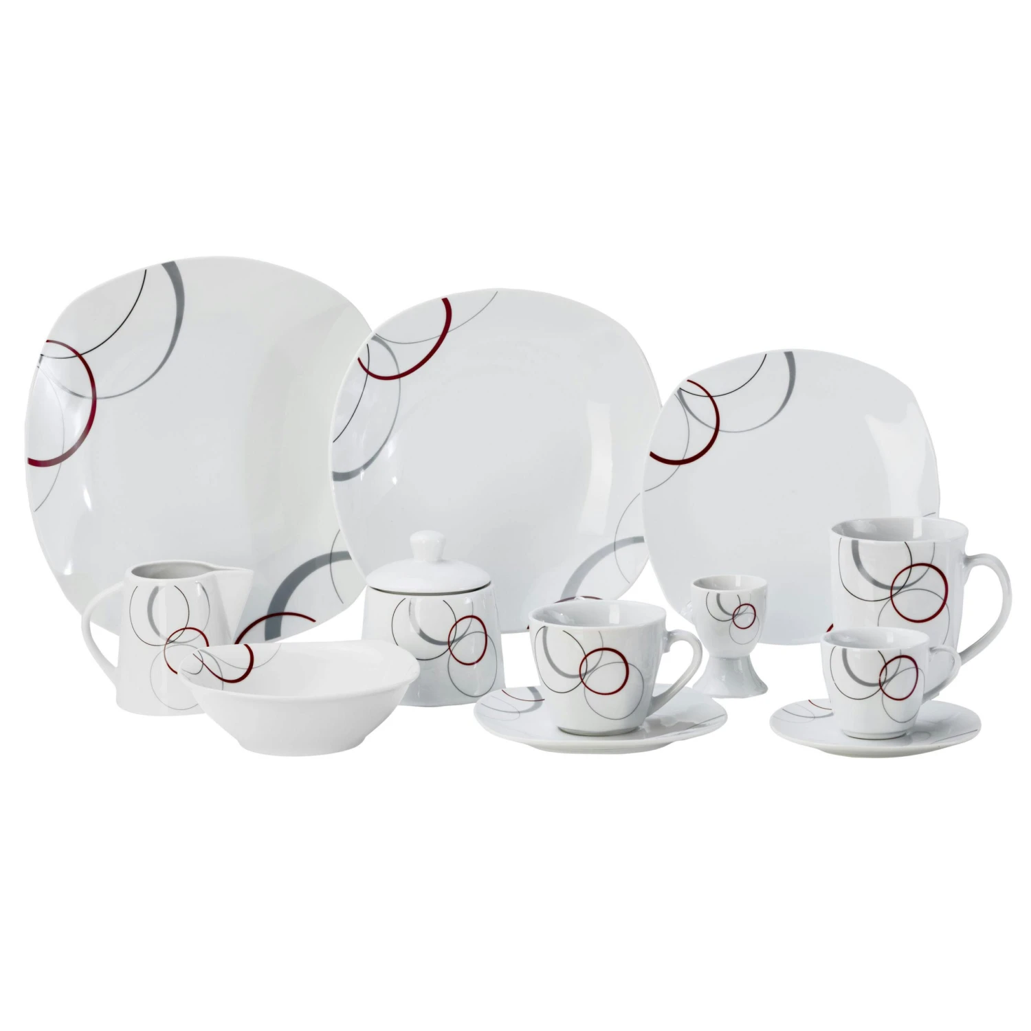 Frühstück, Vorspeise, Nachtisch, Beilagen und Hauptspeisen werden komplett abgedeckt. Für den Kaffeeplausch stehen neben Kaffeetassen, auch Espressotassen und große Kaffeebecher bereit. Drei verschiedene Tellergrößen, Eierbecher, Milchkännchen und die Zuckerdose mit Deckel runden das Set sinnvoll ab. Die Servierschälchen können für Müsli, Suppen, Salate und cremige Desserts gleichermaßen genutzt werden.