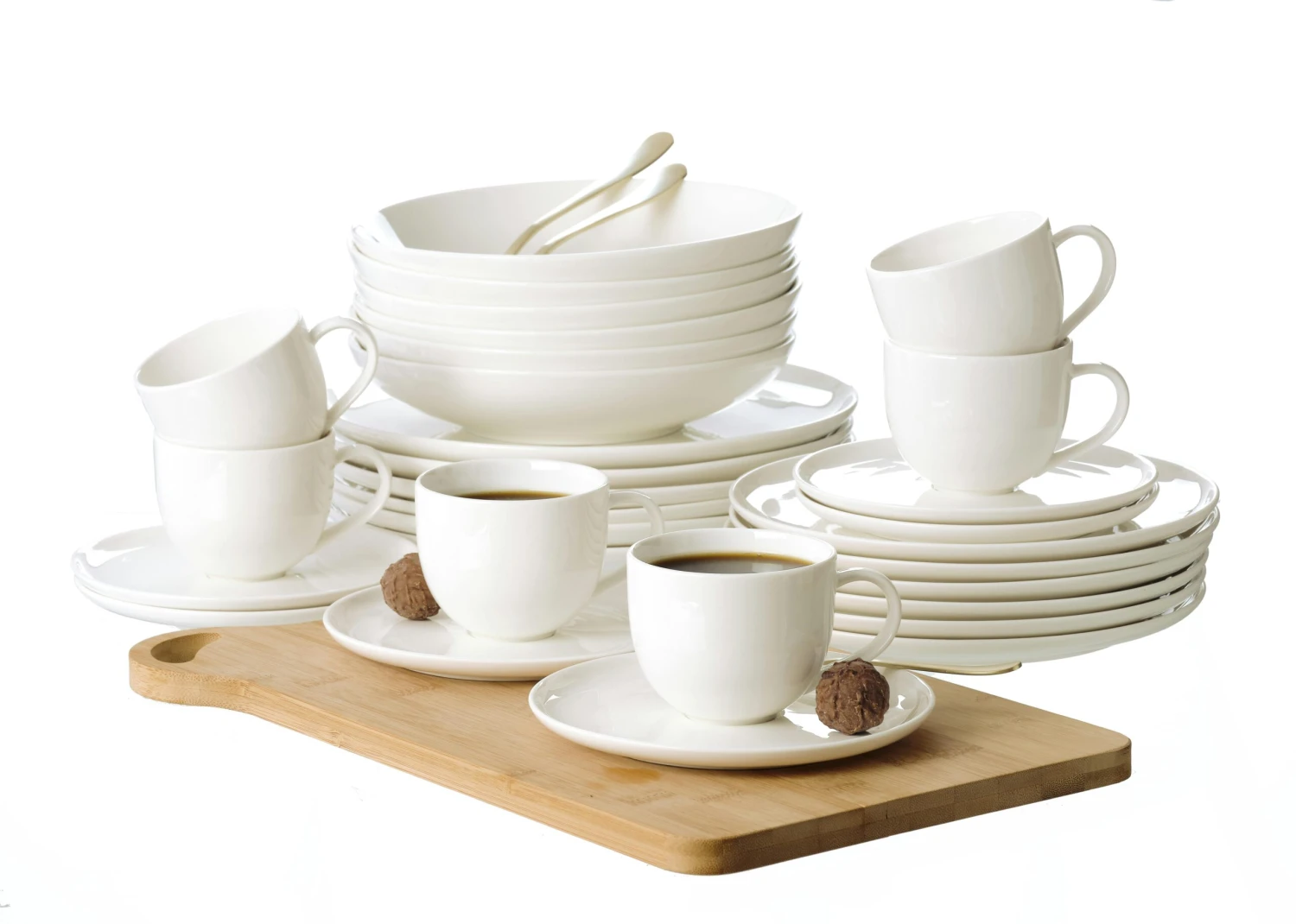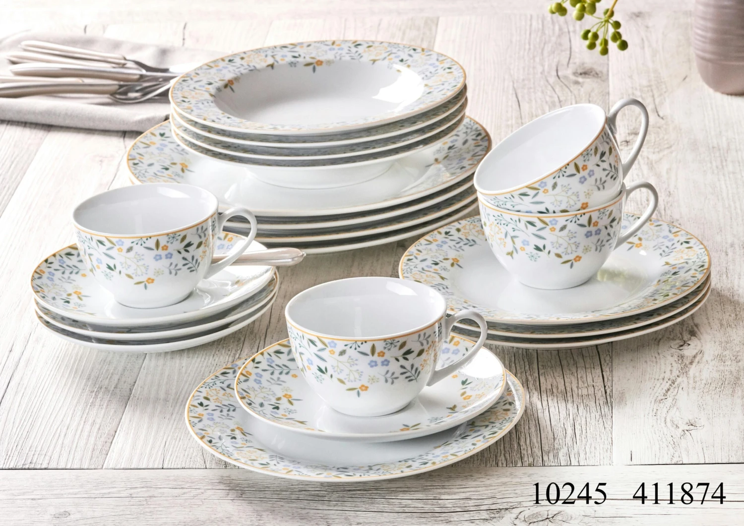 Kombiservice, Porzellan, 20-teilig, für 4 Personen, spülmaschinengeeignet, 4 Obertassen 220 ml, 4 Untertassen 16 cm, 4 Frühstücksteller 20,5 cm, 4 Speiseteller 26,5 cm, 4 Suppenteller 21,5 cm. Wer Blumen mag, wird cora lieben! Der detailreich gestaltete Floral-Dekor ist dank der soften Farben erfrischend dezent und zeitlos aktuell. Das stylishe Kombiservice sorgt vom Frühstück bis zum Abendbrot für helle Freude.